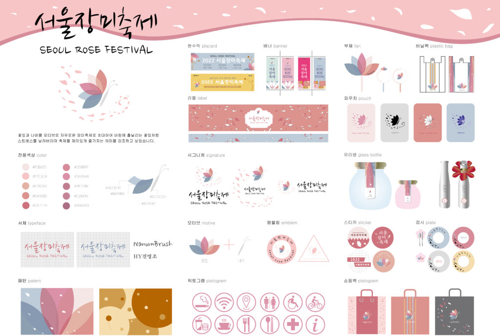 서울장미축제의 고유한 감성과 메시지를 담아 통일된 브랜드 아이덴티티를 구현했습니다.