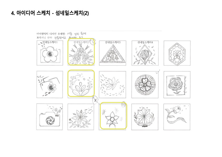 섬네일 스케치로 형태적 아이디어를 발산하고 러프 스케치로 구체화해 조형성을 강화했습니다.